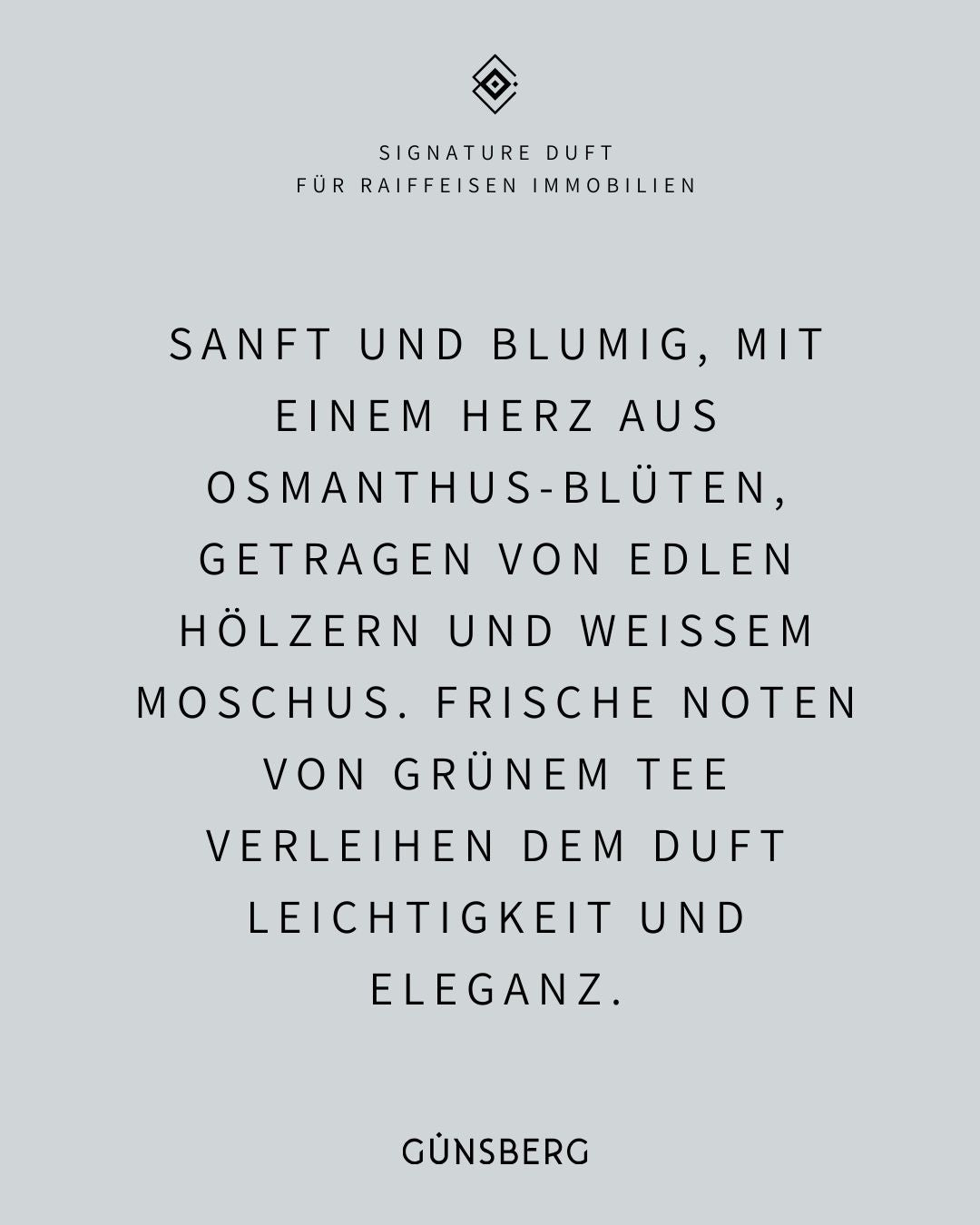 Immobilien sind weit mehr als Räume – sie sind Orte zum Wohlfühlen und Ankommen. Gemeinsam mit Raiffeisen Immobilien Niederösterreich, Wien & Burgenland und Geschäftsführer Mag. Peter Weinberger haben wir einen Signature Duft entwickelt, der genau dieses Gefühl transportiert: „Ganz bei Ihnen“.