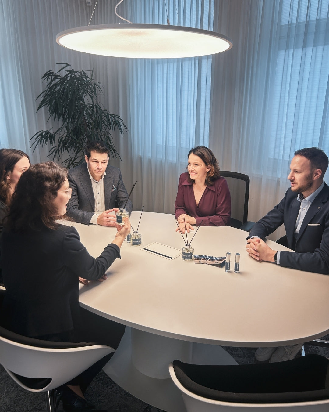 Von der Vorstellung verschiedener Duftvarianten an Vorstand Christian Spitzer, Marketingleiterin Karin Rettenbacher und Filialleiter Martin Schuler bis hin zur finalen Entscheidung: Schritt für Schritt entstand eine Duftkomposition, die das Wesen der Sparkasse einfängt.
