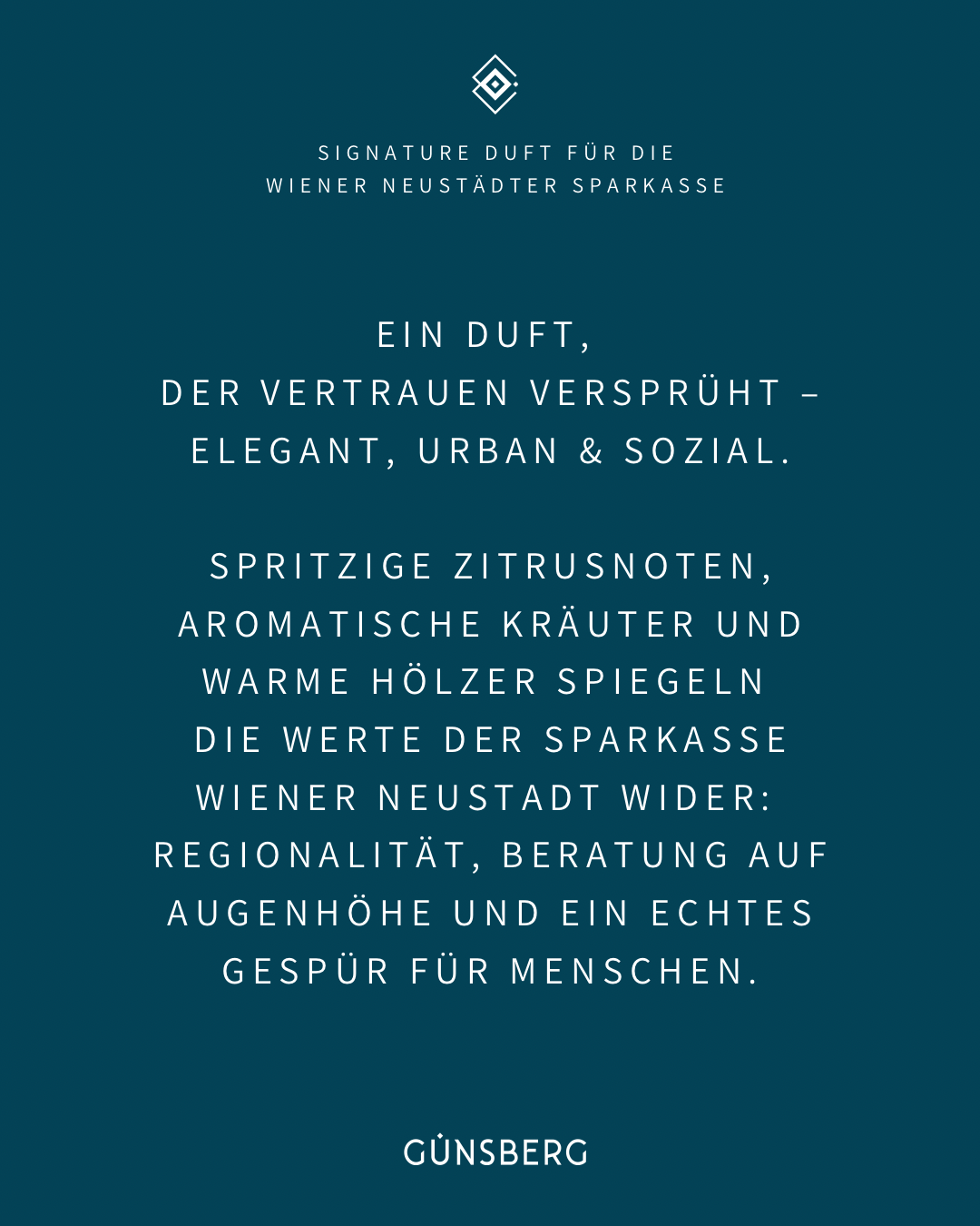 Heute erfüllt der Signature Duft alle Filialen der Sparkasse Wiener Neustadt mit seiner einzigartigen Essenz. Er unterstreicht die Werte des Unternehmens im direkten Kontakt mit den Menschen: nahbar, regional und zukunftsorientiert.