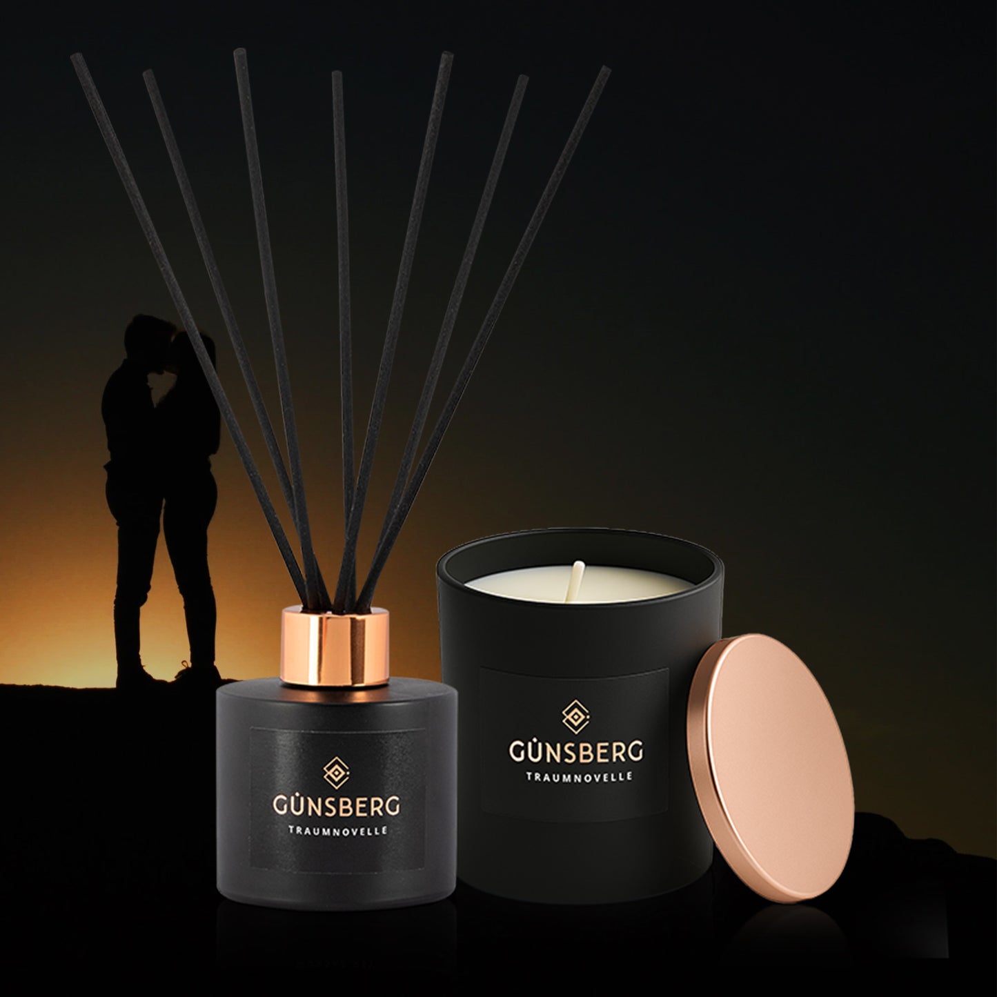 Diese Box beinhaltet unser Traumnovelle Parfum d‘Ambiance inkl. Tuch | 100 ml und unsere Traumnovelle Kerze inkl. Tuch | 200 g.