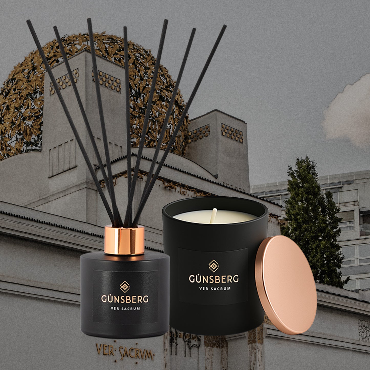 Diese Box beinhaltet unser Ver Sacrum Parfum d‘Ambience inkl. Tuch | 100 ml und unsere Ver Sacrum Kerze inkl. Tuch | 200 g.